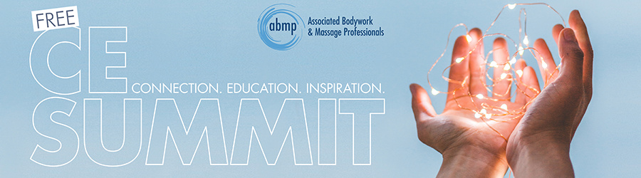 Connect with your massage community and leaders in the profession online at the 2020 ABMP CE Summit: Connection. Education. Inspiration! This virtual education experience addresses a wide variety of topics to share timely and valuable information to enrich your practice and life. Don’t miss this opportunity to interact with the presenters live online, learn tools to help navigate this unique time, and connect virtually with your massage and bodywork community. This event—including 9 hours of CE—is free for everyone in the profession at www.abmp.com/summit! One free event registration gives you access to all of the presentations.