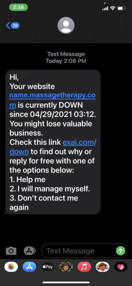 Here is an example of this type of scam in the form of a text message, as recently reported by an ABMP member: