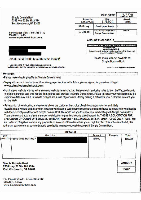 Website Hosting Invoice Scam